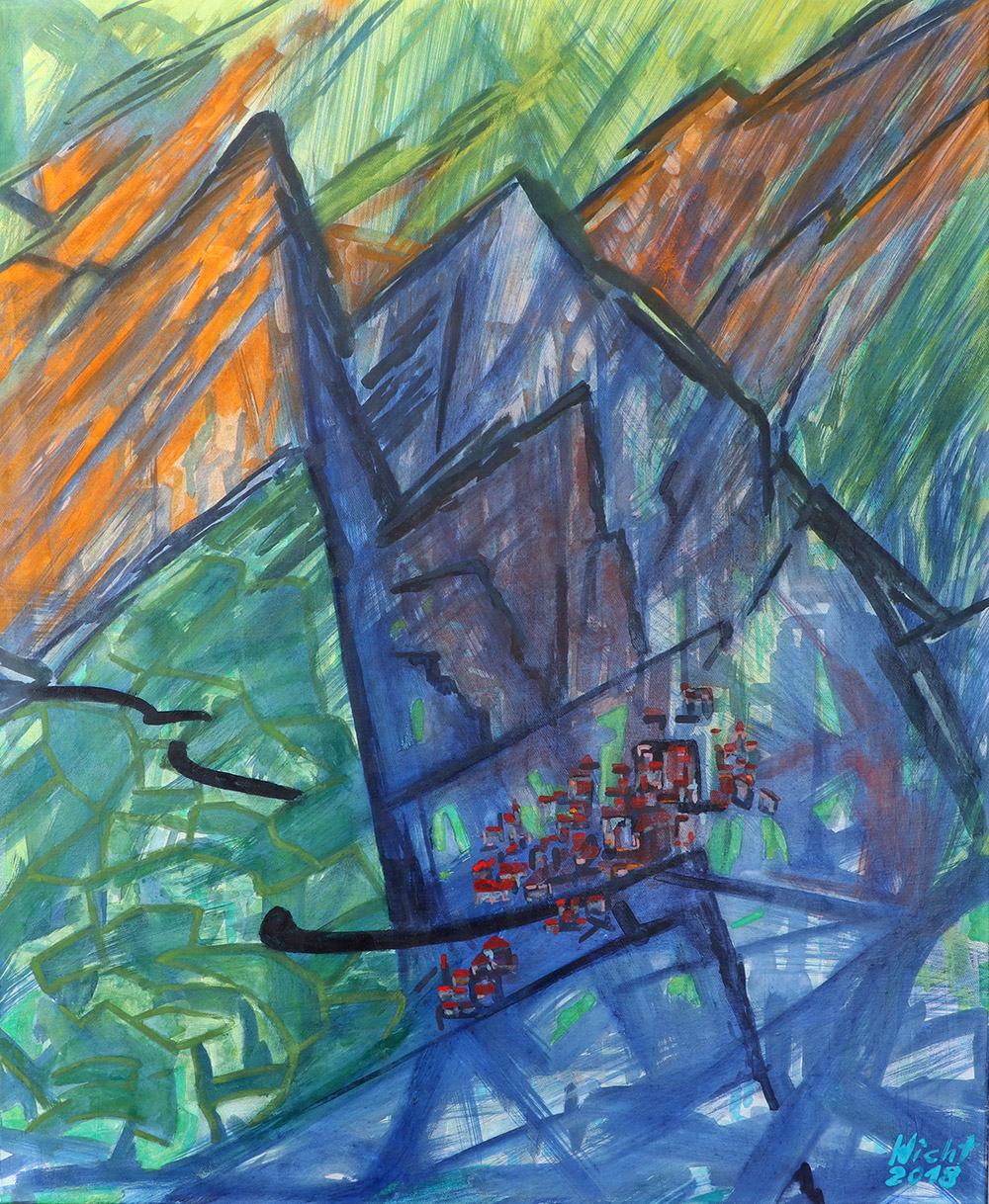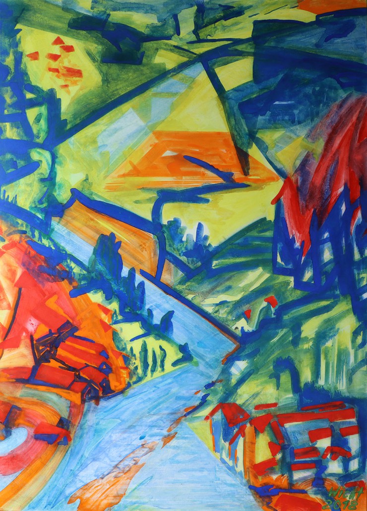 75, Weg im Mindeltal, Blick Mindelzell, 1200×1400 mm